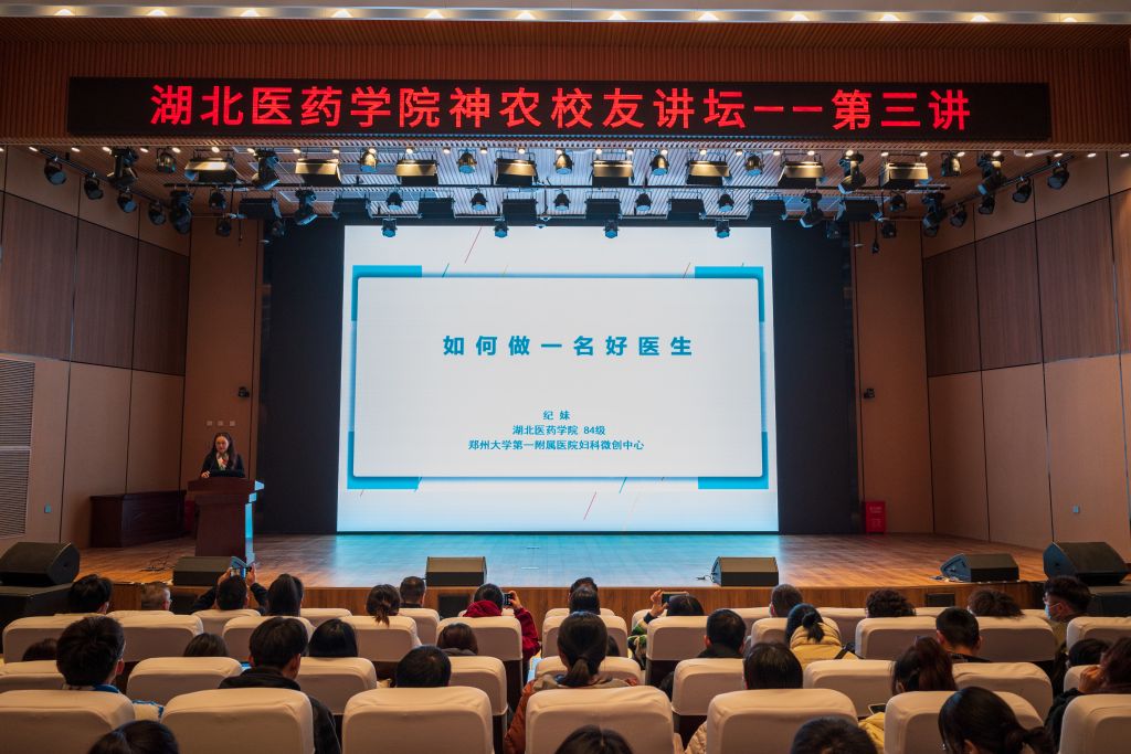本网讯(文/肖杉 图/学通社记者 袁子航)11月12日上午,“神农校友讲坛”第三讲在公卫大楼学术报告厅举行,1984级临床医学专业校友纪妹受邀主讲。原党委书记、校友会名誉会长涂汉军,校友办、研究生院负责人,以及研究生院、第一临床学院师生300余人参加活动。