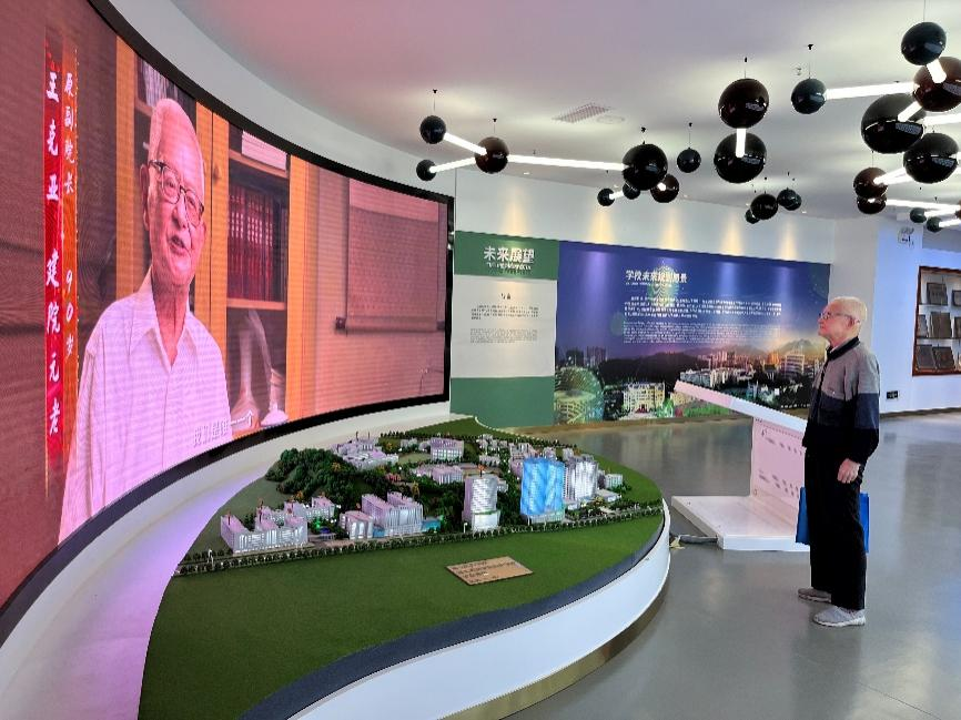 2023年5月15日,王克亚在校史馆观看校史专题片《燃灯者之梦》